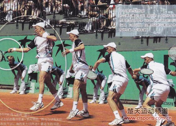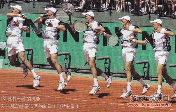 各种体育运动都由三个阶段——①准备阶段②主要阶段③最终阶段构成,具体到网球运动,分为①引拍动作②击球动作(前挥一撞击)③随挥动作。下面的连续图能够很好地说明各个动作,需要注意的是,所有的运动都是连锁反应。