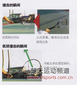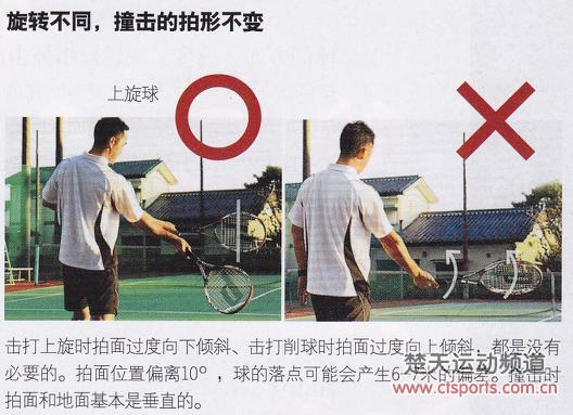 网球拍面朝向何处,掌握方向感,将球击向目标时,拍面必须朝向目标所在的方向。如果这个方向出现些许偏离,击球方向就会出现较大的偏差。例如,击打低于球网的来球,为了让球越过球网,拍面必须向上。在4/1000秒的撞击瞬间,仅凭肉眼是无法确认拍面朝向的,因此,必须掌握各种握拍方式以及何种情况下使用何种握拍方式、拍面朝向哪里等。这些一旦成为常识,对拍面的感觉也就出来了。