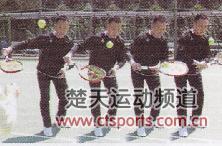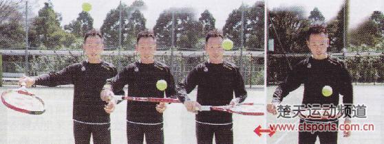 下面开始进入实际的击球环节。首先用反手的拍面颠球,然后施以少量的旋转。颠球一削球一颠球……从球与球拍接触的状态开始施加旋转。