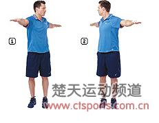 站立在地上,两脚分开与臀宽,向两边平举双臂,使它们平行于地。收缩臀部,腿不动身体向右转,然后向左转,左右各10次。