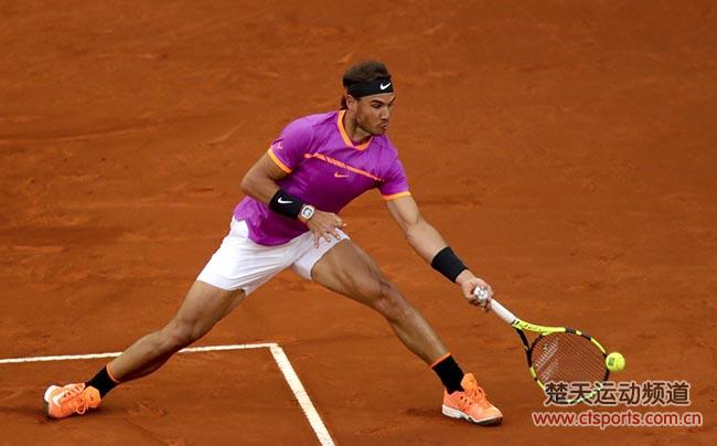 2017马德里大师赛男单决赛,西班牙天王纳达尔对阵首次打进大师赛决赛的奥地利新星蒂姆。首盘对决蒂姆就显示出强有力的进攻力,而纳达尔也不遑多让,防守严密同时又抓住机会进攻。最终两人缠斗至抢七,纳达尔7-6(8)险胜夺得头筹。