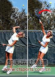 5.挥拍到达最高点时展开身体,注意随挥动作
