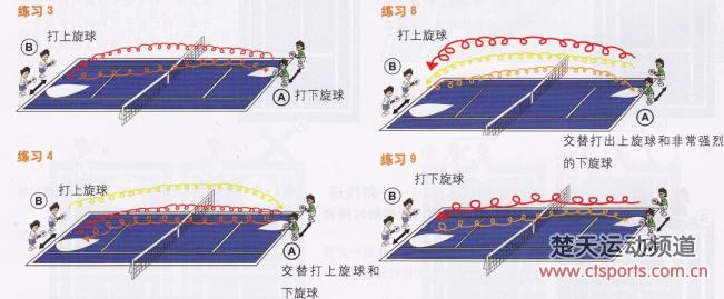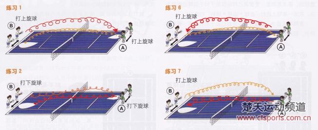 “击球=击球+回防”是练习的基本原则,要时刻注意移动到正确的站位。在练习中可随时变化.A发生变化、B发生变化、双方同时变化或双方都不变化等。变换条件时,可通过变化程度的调整(由上旋改变为强烈上旋等)来加强练习效果。