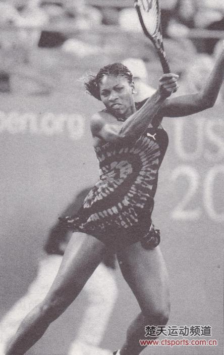 正手击球时,小威廉姆斯主要依靠腿部、胸部和躯干的力量来击球。