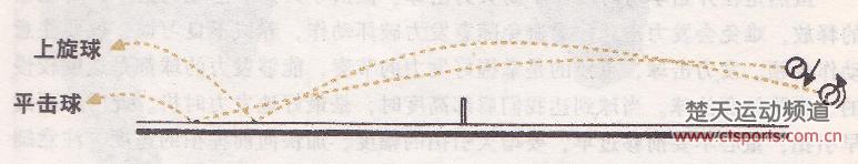 记住,旋转不是用手腕,而只是臂向前击球时做转动的结果。不要有意用拍去“擦”球,击球应该是简单和直接的。