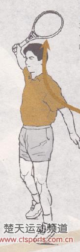 伸展胸部做随球动作。