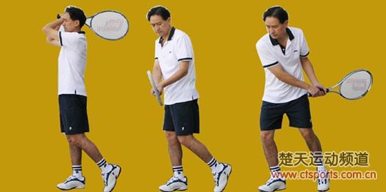 【网球训练:底线网球反手上旋球训练】底线反手双手上旋球的动作要领是: