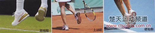 而在草地球场,为了防止滑倒,提高抓地力,穿上鞋底带有凹凸小粒的球鞋最为明智。相比之下,土地球场鞋和最常穿的硬地球场鞋的面相最为接近,两者都采用人字形花纹鞋底,只不过,前者的波纹更为宽疏,能够较全面地应对起动、急停、变向和滑动等运动效果,同时不易积留泥土;后者的波纹更为细密,并且在跖球(脚掌下面靠近拇指根部的球形部位)和后脚跟中部都做了加厚处理,因为在硬地球场打球,球鞋的磨损最为严重。